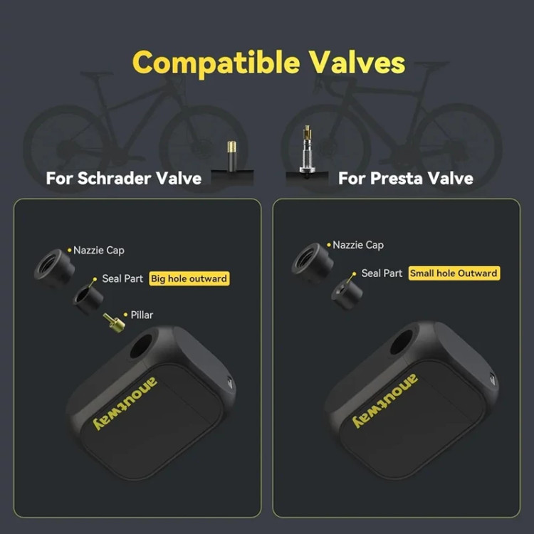 🔄 سازگاری با سوپاپهای Presta و Schrader