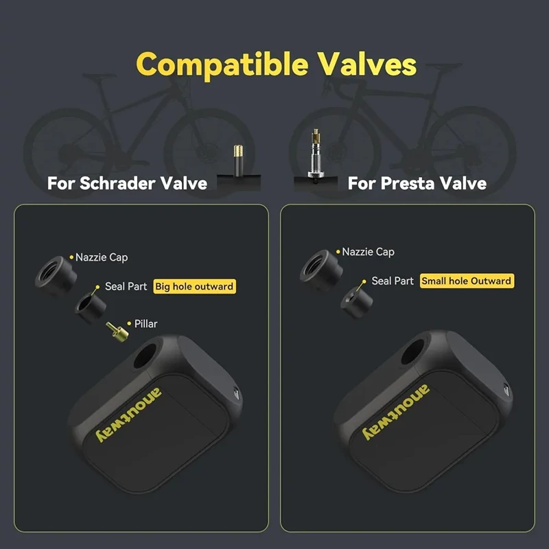 🔄 سازگاری با سوپاپهای Presta و Schrader
