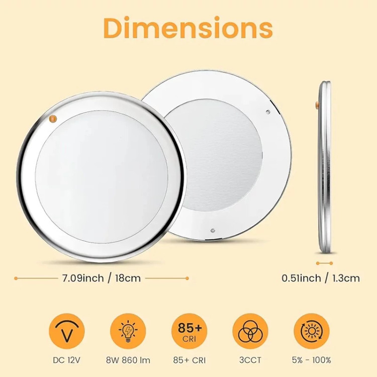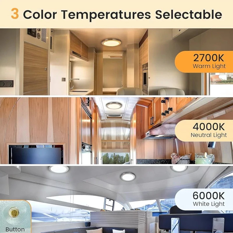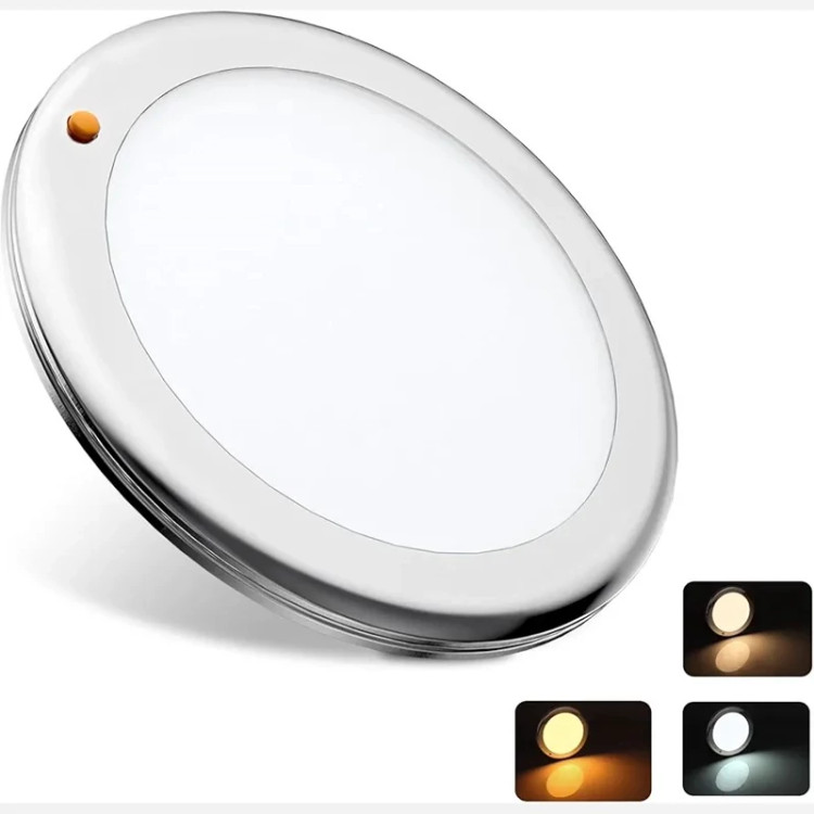 چراغ سقفی CamperXlite Ceiling Light 12V یک انتخاب ایدهآل برای کسانی است که به دنبال روشنایی حرفهای، کممصرف و با طراحی مینیمال در فضای کمپر، کاروان یا قایق خود هستند. این چراغ با سه دمای رنگ متفاوت (۲۷۰۰K، ۴۰۰۰K، ۶۰۰۰K) امکان تنظیم نور گرم، طبیعی یا سرد را بسته به نیاز شما فراهم میکند.