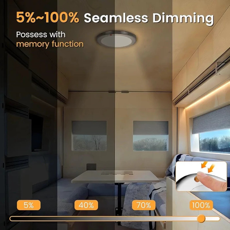 علاوه بر این، CamperXlite Ceiling Light دارای قابلیت سوئیچ داخلی برای تغییر حالت نور است و برخی مدلها از دیمر (قابلیت تنظیم شدت نور) نیز پشتیبانی میکنند. نصب آسان، طراحی مدرن، و مصرف پایین انرژی آن را به گزینهای محبوب برای ارتقاء روشنایی داخلی تبدیل کرد