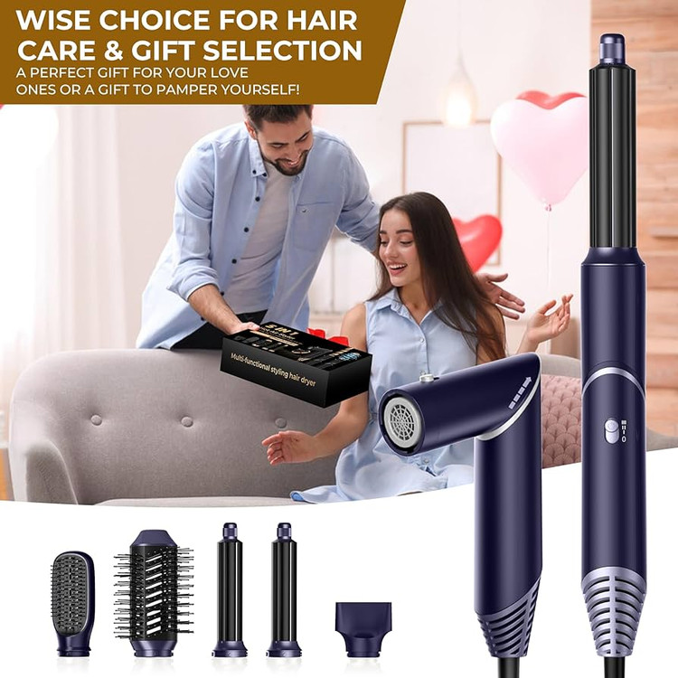 سشوار برسدار چندکاره UKLISS Multi-Use 5-in-1 Airbrush Airstyler یک ابزار حرفهای برای افرادی است که میخواهند بدون استفاده از چندین دستگاه مختلف، تمام نیازهای حالتدهی مو را در یک مجموعه کامل و قدرتمند داشته باشند. این دستگاه با طراحی مدرن، موتور قدرتمند و فناوری جریان هوای پیشرفته، امکان خشککردن، صافکردن، حجمدهی و فر کردن مو را تنها با تعویض سریها فراهم میکند.