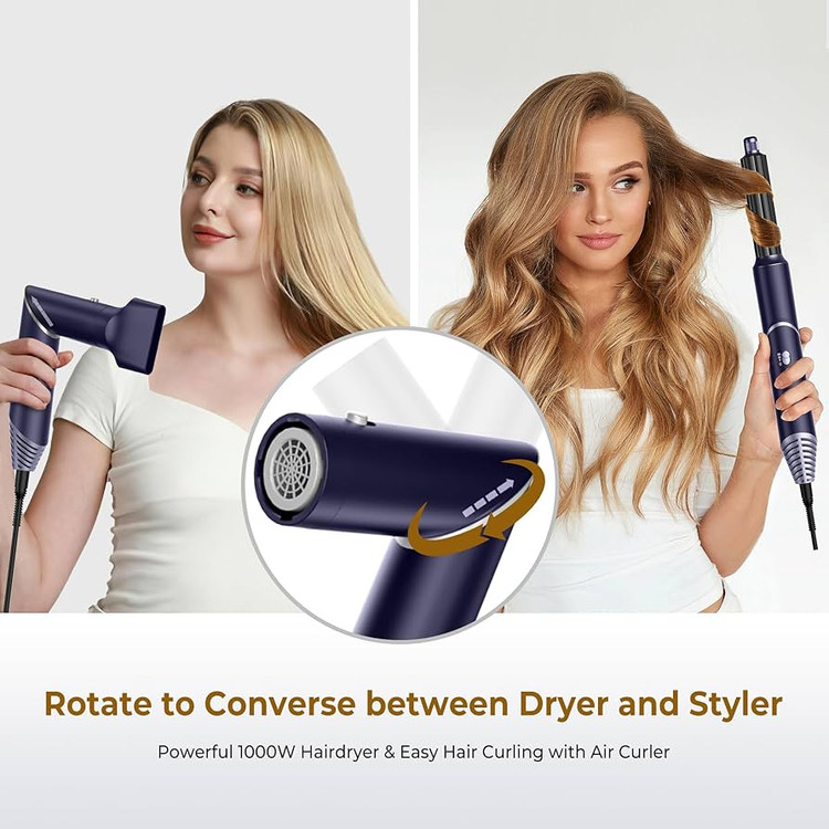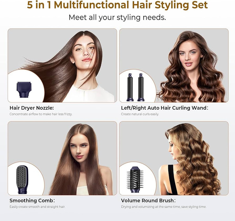 وجود ۵ سری کاربردی شامل سری براش گرد حجمدهنده، سری شانه صافکن، سریهای فرساز چپ و راست و سری سشوار خشککننده باعث شده این محصول جایگزین مناسب سشوار، اتو مو، فرکننده و براش حرارتی باشد. دمای قابل تنظیم در سه سطح و عملکرد باد سرد نیز امکان کنترل کامل را در اختیار کاربر قرار میدهد.