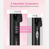 وجود سه دمای قابل تنظیم (160، 180 و 200 درجه سانتیگراد) باعث میشود تا این اتوی فر برای انواع مو از نازک تا ضخیم قابل استفاده باشد. همچنین المنت سرامیکی باعث میشود موها در حین فر شدن، درخشان و بدون وز باقی بمانند.