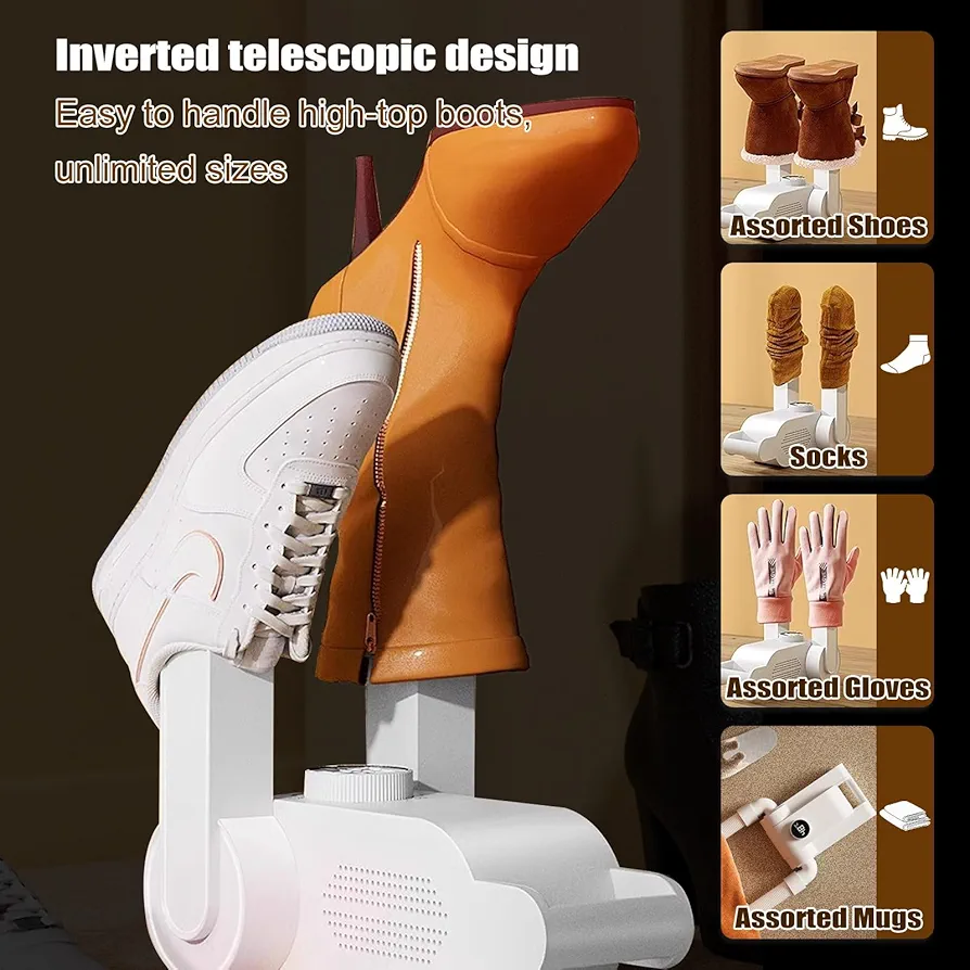 خشککن و گرمکن برقی دستکش و کفش محصولی حرفهای برای حل مشکل رطوبت و بوی نامطبوع دستکشها، کفشها، بوتها و سایر پوشاک ورزشی و زمستانی است. با استفاده از فناوری هوای گرمایشی ۳۶۰ درجه و جریان هوای گرم ملایم، این دستگاه بهطور کامل رطوبت را از بافتها خارج و از رشد باکتریهای بوزا جلوگیری میکند. �
