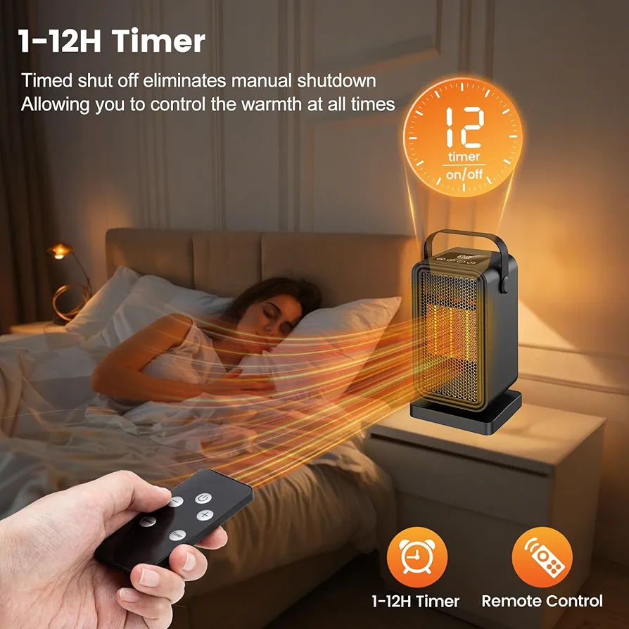 این هیتر مجهز به سیستم ایمنی پیشرفته مانند محافظت در برابر داغ شدن بیش از حد، خاموشی خودکار و پایه پایدار است. این ویژگیها آن را به محصولی ایمن برای استفاده در شب، کنار میز کار یا حتی اتاق کودک تبدیل میکند. وجود ریموت کنترل و تایمر ۱ تا ۱۲ ساعته کنترل دستگاه را بسیار سادهتر کرده و به شما امکان میدهد گرمایش محیط را دقیقاً مطابق نیازتان تنظیم کنید.