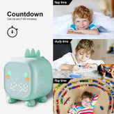 ساعت دایناسوری XR-MM-C2007 دارای زنگ هشدار با چندین ملودی مختلف است که بهصورت ملایم کودک را بیدار میکند. امکان کنترل سطح صدا نیز وجود دارد تا زنگ برای کودک آزاردهنده نباشد. همچنین قابلیت شمارش معکوس (Countdown) و حالت آموزش خواب (Sleep Training) کمک میکند کودک نظم بیشتری در ساعت خواب پیدا کند.