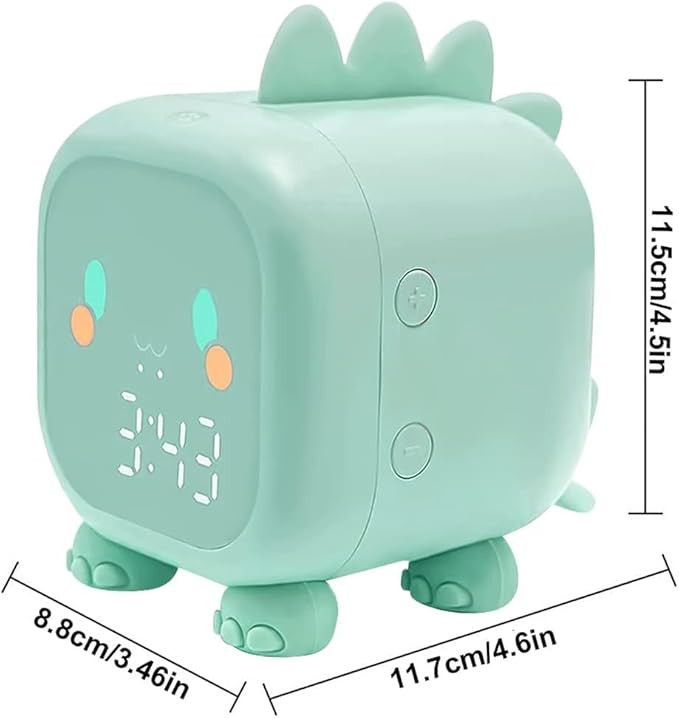 این ساعت از جنس ABS و سیلیکون مقاوم ساخته شده و وزن سبک آن باعث میشود بهراحتی روی میز مطالعه، قفسه یا کنار تخت قرار بگیرد. صفحه LED باکیفیت، اطلاعات زمان، تاریخ و دما را بهصورت واضح نمایش میدهد و قابلیت تنظیم در حالتهای ۱۲ یا ۲۴ ساعته را دارد. این ویژگی به والدین کمک میکند کودکان را با مفهوم زمان آشنا کرده و برنامه خواب منظمی برای آنها ایجاد کنند.