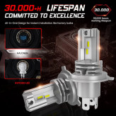 قدرت نوری 10,000 لومن باعث میشود مسیر پیشِ رو بهطور یکنواخت و بدون نقاط تاریک روشن شود. این شدت نور، نسبت به لامپهای هالوژن سنتی چندین برابر بیشتر بوده و رانندگی شبانه را ایمنتر و راحتتر میسازد. بهلطف طراحی دقیق چیپست و محل قرارگیری LEDها، الگوی نور متمرکز و بدون پخش اضافی ایجاد میشود؛ بنابراین نور مزاحم برای رانندگان مقابل تولید نمیکند.