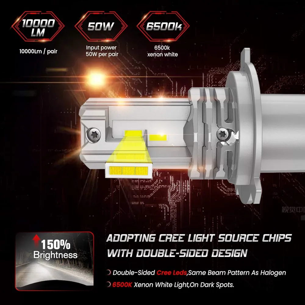 قدرت نوری 10,000 لومن باعث میشود مسیر پیشِ رو بهطور یکنواخت و بدون نقاط تاریک روشن شود. این شدت نور، نسبت به لامپهای هالوژن سنتی چندین برابر بیشتر بوده و رانندگی شبانه را ایمنتر و راحتتر میسازد. بهلطف طراحی دقیق چیپست و محل قرارگیری LEDها، الگوی نور متمرکز و بدون پخش اضافی ایجاد میشود؛ بنابراین نور مزاحم برای رانندگان مقابل تولید نمیکند.