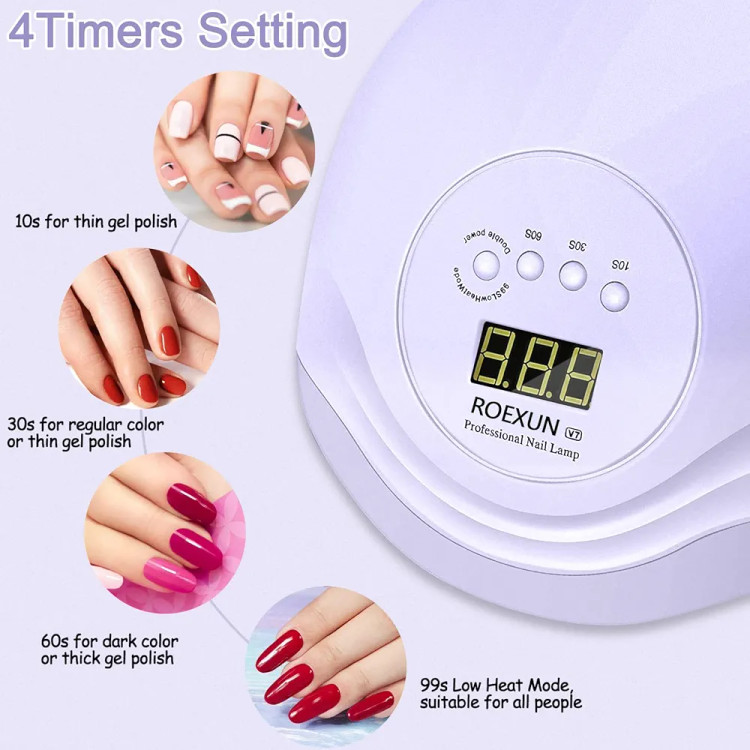 از طرفی، چهار حالت زمانبندی 10، 30، 60 و 99 ثانیه امکان تنظیم دستگاه برای انواع ژلهای ضخیم و نازک را فراهم میکند. حالت 99 ثانیه کمحرارت (Low Heat Mode) از داغ شدن و ایجاد احساس سوزش جلوگیری کرده و گزینهای مناسب برای افراد با ناخنهای حساس است.