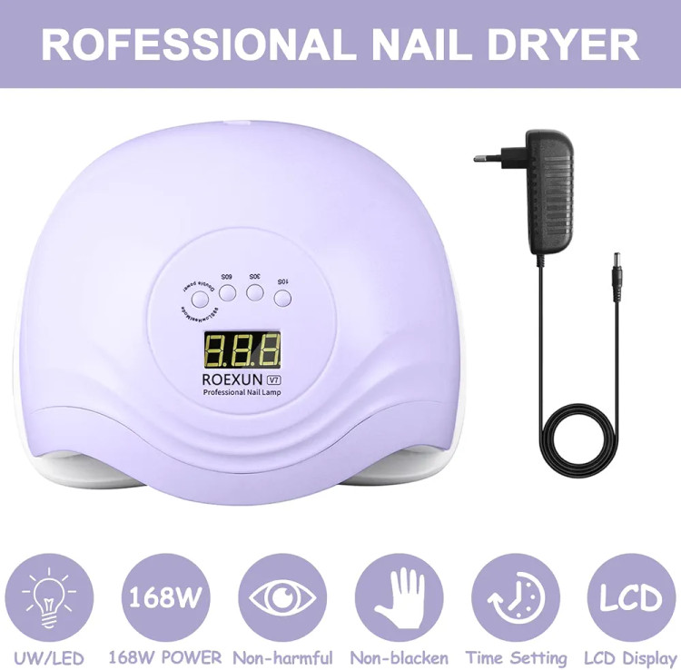 اگر به دنبال یک دستگاه حرفهای و در عین حال کاربردی برای خشککردن انواع لاک ژل، پولیش ژل و لمینت ناخن هستید، دستگاه UV/LED ناخن ROEXUN مدل 168W یکی از بهترین انتخابها برای استفاده خانگی و سالنی است. این دستگاه با ترکیبی از قدرت بالا، سرعت خشککردن عالی و طراحی ارگونومیک، تجربهای متفاوت در مانیکور و پدیکور ایجاد میکند. توان 168 وات این دستگاه باعث میشود ژلها بسیار سریعتر از دستگاههای معمولی خشک شوند؛ به همین دلیل برای افرادی که میخواهند در زمان خود صرفهجویی کنند، انتخابی ایدهآل محسوب میشود.