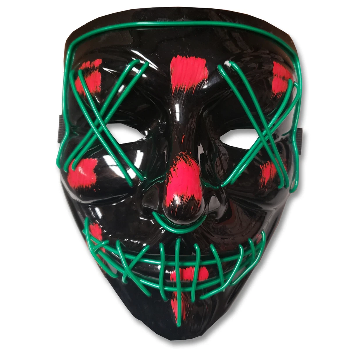 یکی از نقاط قوت این ماسک، وزن سبک و ساختار ارگونومیک آن است که باعث میشود حتی برای ساعات طولانی نیز بدون احساس خستگی قابل استفاده باشد. سیستم روشنایی آن از طریق یک کنترلر خارجی با باتری AA کار میکند و امکان تغییر حالت نوردهی شامل ثابت، چشمکزن آهسته و چشمکزن تند را فراهم میسازد. این ماسک برای استفاده در جشن هالووین، کلاب، کنسرت، رویدادهای شبانه، عکاسی، تولدهای تمدار، کازپلی و نمایشهای هنری فوقالعاده محبوب است.