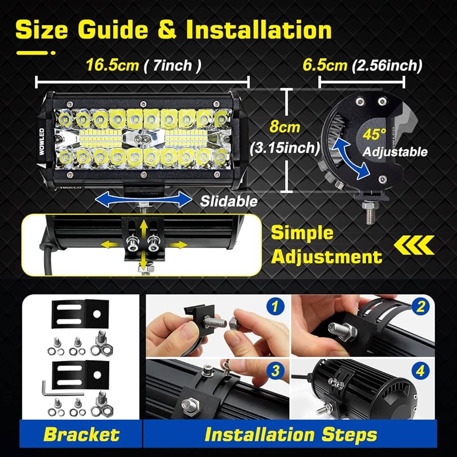 چراغهای WOWLED با ولتاژ 12 ولت سازگارند و نصب آنها به کمک براکتهای قابل تنظیم بسیار ساده است. چه بخواهید مسیرهای آفرودی را روشن کنید، چه قصد استفاده در محیطهای کاری، کمپینگ یا نور کمکی خودرو داشته باشید، این چراغها ارزش خرید بالایی ارائه میکنند.