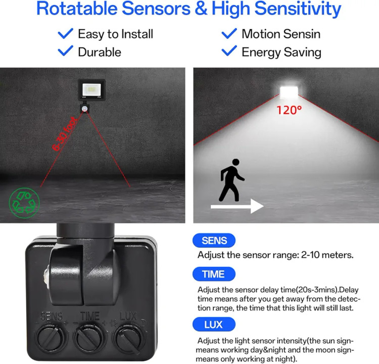 وجود تنظیمات قابلانعطاف برای میزان حساسیت سنسور، مدت زمان روشن ماندن چراغ و عملکرد در روز یا شب، این مدل را به یک سیستم روشنایی هوشمند و قابلتنظیم تبدیل کرده است. با توجه به مصرف انرژی پایین، نوردهی قوی، مقاومت فوقالعاده و نصب آسان، این پروژکتور گزینهای ایدهآل برای افزایش امنیت و زیبایی محوطههای بیرونی محسوب میشود.