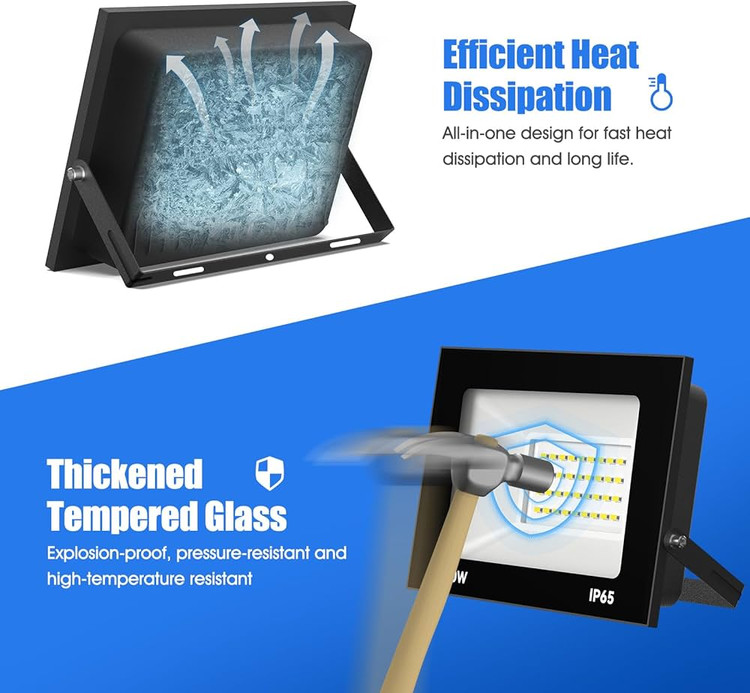 بدنه پروژکتور از آلومینیوم دایکست ضدزنگ ساخته شده که علاوه بر استحکام بالا، انتقال حرارت فوقالعادهای دارد و عمر مفید چراغ را افزایش میدهد. استاندارد IP66 نیز ثابت میکند که این چراغ در برابر باران شدید، برف، گردوغبار و شرایط محیطی سخت کاملاً مقاوم است.