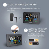 این دستگاه دما و رطوبت داخلی و خارجی را با سنسور بیسیم نمایش میدهد، پیشبینی هوا دارد و مجهز به ساعت اتمی و آلارم است.