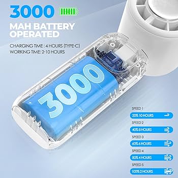 این پنکه مجهز به باتری قابل شارژ با ظرفیت بالا است که تا چند ساعت بدون نیاز به برق کار میکند و با پورت USB استاندارد، امکان شارژ از پاوربانک، لپتاپ یا شارژر دیواری وجود دارد. پنکه XUJMK Ds23 دارای چند سطح سرعت متغیر است و شما میتوانید بر اساس نیاز خود میزان جریان باد را تنظیم کنید. طراحی بادوام و سبک آن با مواد با کیفیت باعث شده تا مقاومت بالایی در برابر ضربه و فشار داشته باشد.
