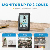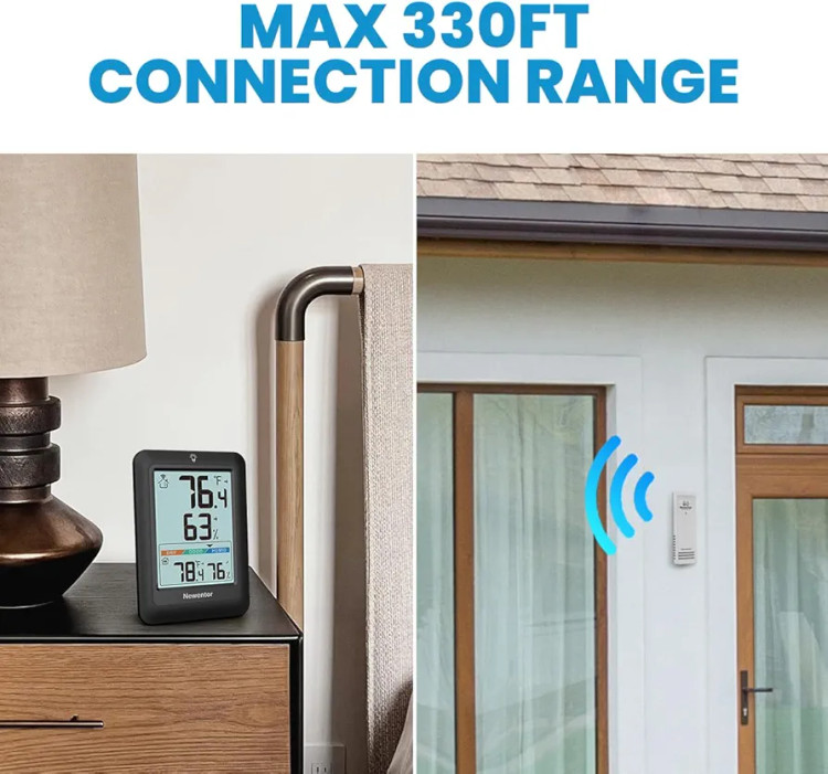 حسگر بیسیم این محصول قادر است تا فاصله حدود ۱۰۰ متر (در فضای باز) را پوشش دهد و دادهها را بهصورت دقیق به واحد اصلی منتقل کند. علاوه بر این، دستگاه دارای هشدار راحتی رطوبت است که با رنگبندی یا نمادهای ساده به شما اطلاع میدهد که محیط خشک، متعادل یا مرطوب است. استفاده از باتری قابل تعویض باعث میشود دستگاه بدون نیاز به برق مستقیم، کارایی بالایی داشته باشد و در هر مکانی قابل استفاده باشد.
