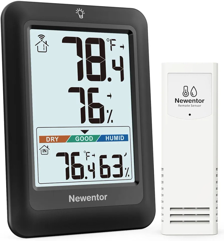 Newentor Thermometer & Hygrometer یک دستگاه پیشرفته و دقیق برای اندازهگیری دما و رطوبت داخلی و خارجی است که با طراحی مدرن و قابلیتهای کاربردی، زندگی روزمره شما را آسانتر میکند. این ابزار کوچک و سبک، اطلاعات مهم محیطی را بهصورت بلادرنگ نمایش میدهد و با حسگر بیسیم داخلی و خارجی، امکان ردیابی شرایط هوایی خانه، محل کار یا محیطهای بیرونی را فراهم میکند.