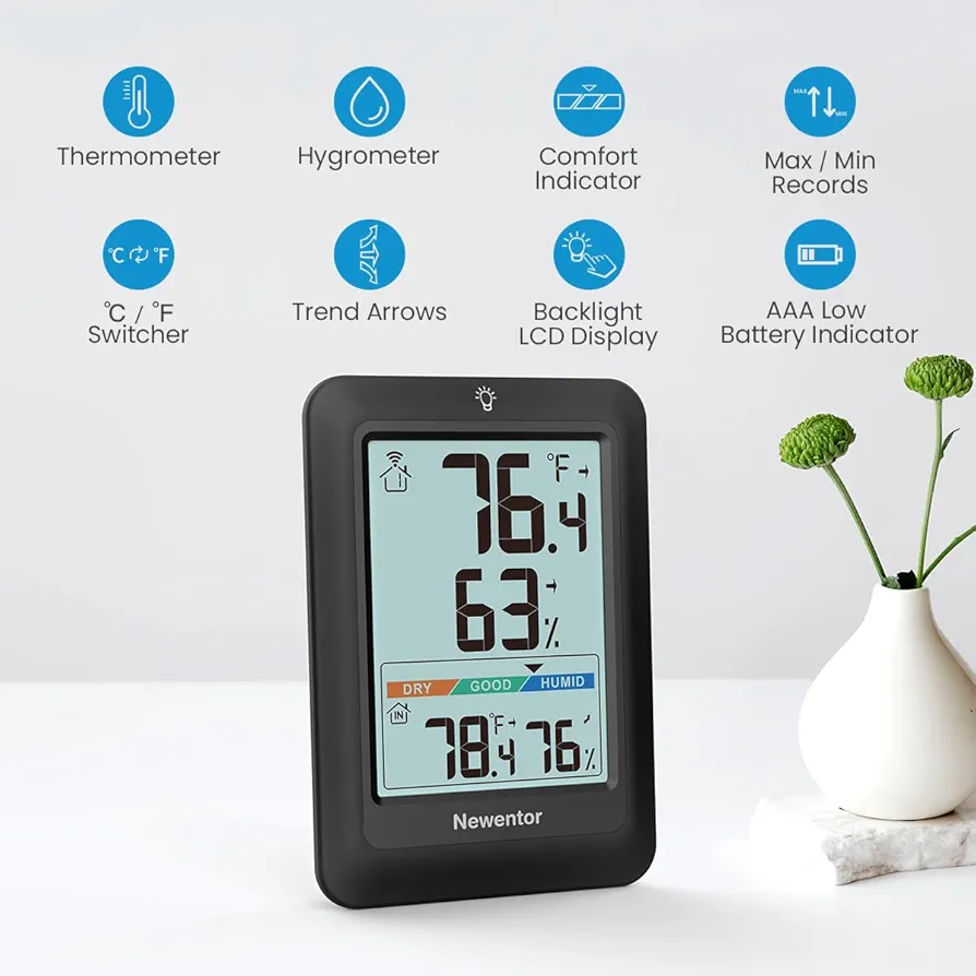 با Newentor Thermometer & Hygrometer دیگر نیازی به نگرانی در مورد شرایط محیطی نخواهید داشت و میتوانید سلامت خانواده، گیاهان و تجهیزات حساس به دما و رطوبت را تضمین کنید. این دستگاه ترکیبی از دقت، سهولت استفاده و طراحی زیباست که نیازهای روزمره شما را بهطور کامل پوشش میدهد.
