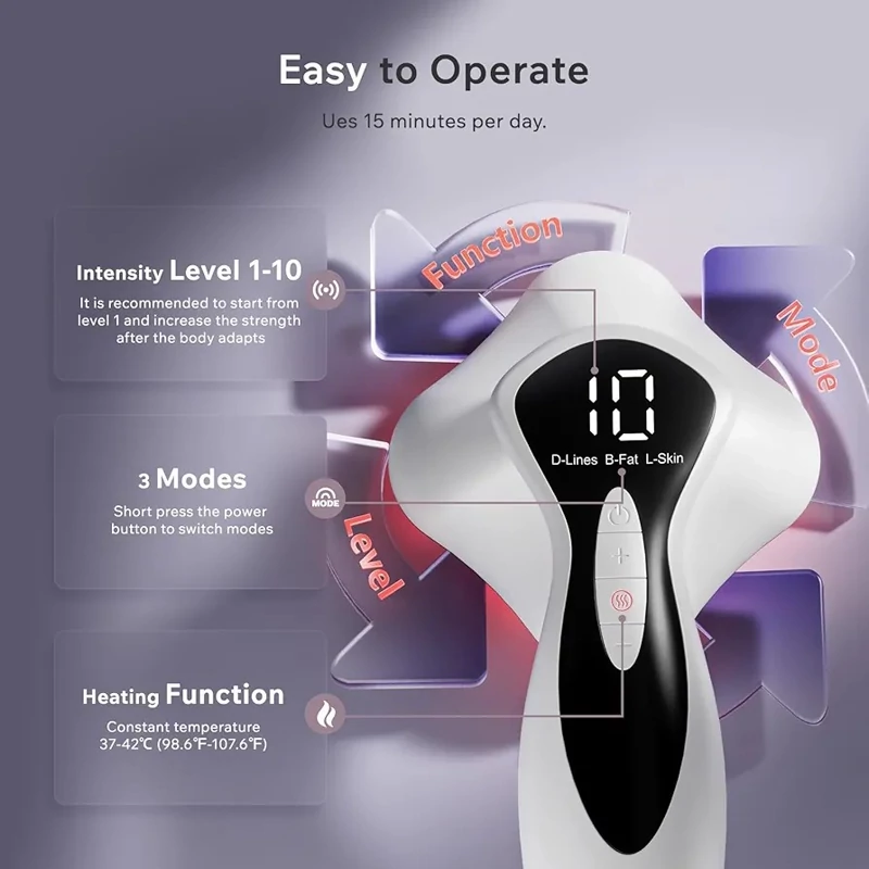 Cellulite Massager F5 یک دستگاه پیشرفته و حرفهای برای کاهش سلولیت و بهبود گردش خون در نواحی مختلف بدن است. این ماساژور با ترکیب تکنولوژیهای مدرن، تجربهای بینظیر از ماساژ عمیق و کارآمد را ارائه میدهد و به شما کمک میکند پوستتان نرمتر، سفتتر و شادابتر شود.