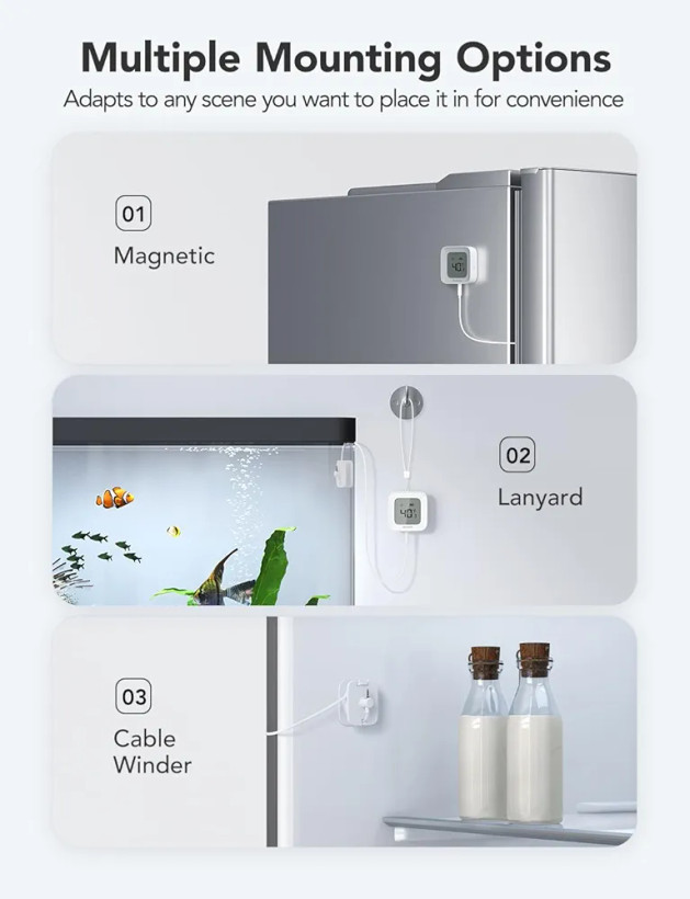 طراحی کمحجم و نصب آسان این دستگاه، آن را برای هر یخچال، فریزر یا محیط خانگی مناسب میسازد. علاوه بر این، هشدارهای هوشمند اپلیکیشن به شما اطلاع میدهند که در صورت باز ماندن درب یا تغییر ناگهانی دما، سریع واکنش نشان دهید.