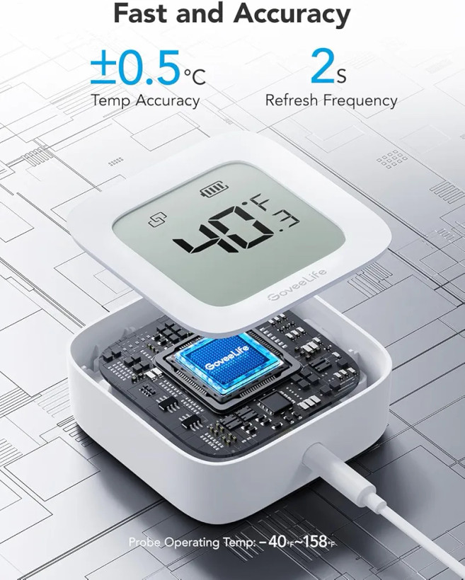 GoveeLife Digital Thermometer Wireless بهترین گزینه برای کسانی است که میخواهند سلامت مواد غذایی و کیفیت محیط را تضمین کنند و تجربهای هوشمند و راحت در مدیریت دما داشته باشند. این دماسنج هوشمند با قابلیت ذخیرهسازی داده و اتصال آنلاین، راهکاری کامل برای کنترل دما در خانه و محل کار ارائه میدهد.