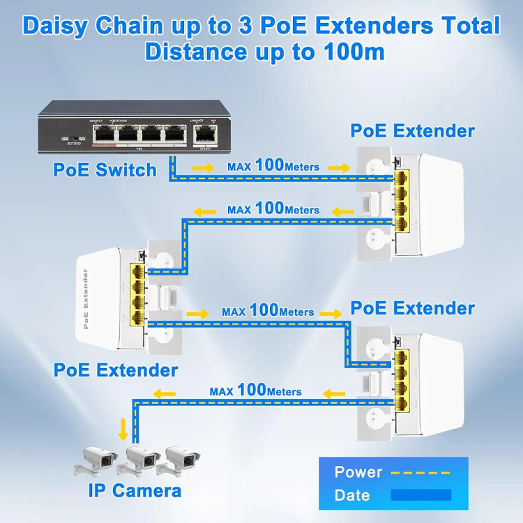 این دستگاه برای محیطهای بیرونی طراحی شده و با مقاومت بالا در برابر شرایط جوی، نصب آن روی دیوار یا سقف بسیار آسان است. از مهمترین مزایای آن، صرفهجویی در کابلکشی، افزایش انعطاف شبکه و کاهش هزینهها است. همچنین نیازی به منبع تغذیه جداگانه نیست و تمام انرژی مورد نیاز از طریق کابل PoE تأمین میشود. برای کسبوکارها، منازل هوشمند و پروژههای امنیتی، این اکستندر یک انتخاب حرفهای و قابل اعتماد محسوب میشود.