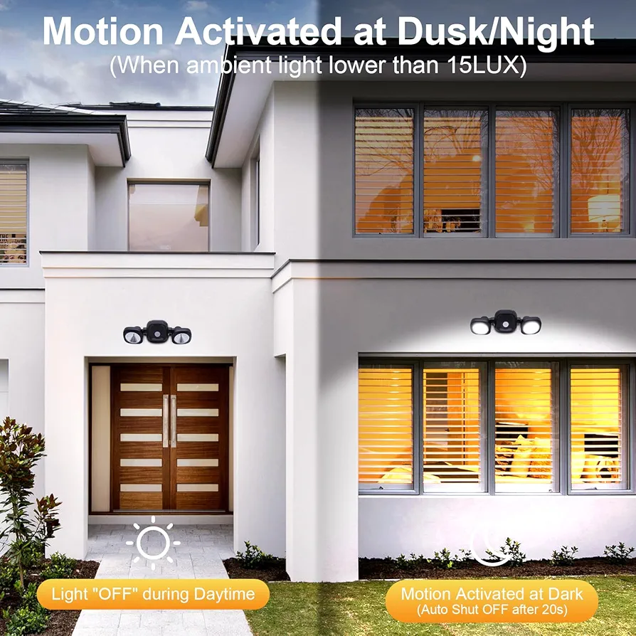 زاویه دید گسترده ۱۲۰ درجه و برد تشخیص حرکت تا ۳۰ فوت، پوشش کامل برای مسیرها، باغچهها، پارکینگ و ورودیهای خانه فراهم میکند. این چراغ مناسب استفاده در فضای باز است و در برابر شرایط جوی مقاوم میباشد. نصب آن ساده بوده و با هر محیطی هماهنگ میشود.