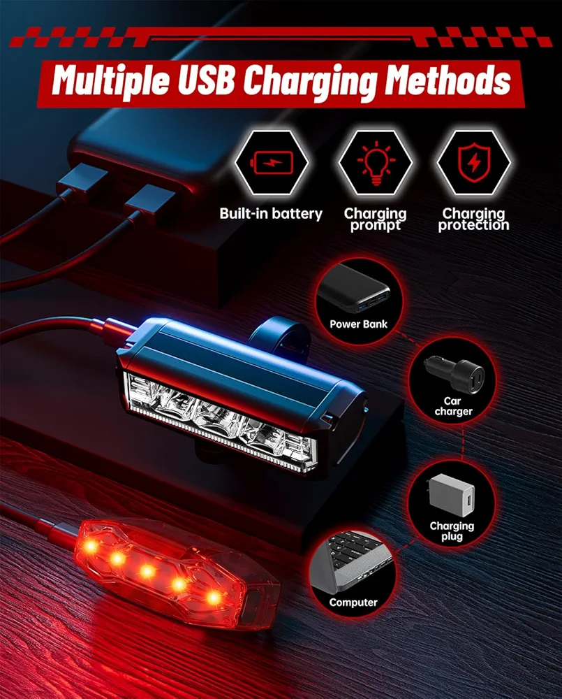 نصب چراغها بدون نیاز به هیچ ابزار خاصی انجام میشود؛ پایههای سیلیکونی انعطافپذیر به راحتی روی فرمان یا لوله زین قرار میگیرند و حتی در مسیرهای ناهموار نیز کاملاً ثابت باقی میمانند. وجود چندین حالت نوردهی (ثابت، کمنور، چشمکزن و…)، امکان انتخاب بهترین حالت را بسته به شرایط محیط و میزان مصرف باتری فراهم میسازد. استفاده از باتری قابل شارژ نیز به معنی حذف هزینههای باتری قلمی و شارژ آسان با پاوربانک، لپتاپ یا شارژر موبایل است.