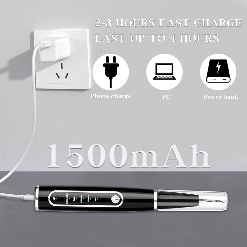 این مدل معمولاً همراه با ابزارهای کمکی مانند آینه دندانپزشکی و نوکهای مختلف عرضه میشود تا امکان بررسی دقیقتر و پاکسازی هدفمند مهیا شود. باتری قابلشارژ، بدنه ضدلغزش و نور LED برای دید بهتر، استفاده از دستگاه را سادهتر و امنتر میکند.