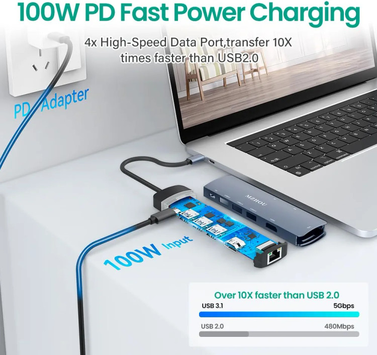 هاب MZHOU 8-in-1 با سیستم Plug & Play بدون نیاز به نصب درایور، با اغلب سیستمعاملها مانند Windows، macOS، ChromeOS و Android سازگار است. در مجموع، این محصول یک انتخاب حرفهای برای افزایش پورتها، بهبود سرعت اتصال و ایجاد یک ایستگاه کاری منسجم است.