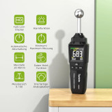صفحه نمایش رنگی با نور پسزمینه و نشانگرهای رنگی سهگانه (سبز = خشک، زرد = هشدار، قرمز = مرطوب) به کاربر کمک میکند در یک نگاه وضعیت رطوبت را تشخیص دهد. قابلیتهای حرفهای مانند نگه داشتن دادهها (Data Hold)، ثبت مقادیر حداکثر و حداقل، و هشدار صوتی، تجربه کاربری را به سطحی پیشرفته میبرد.