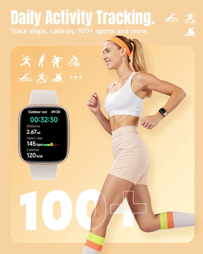 این ساعت هوشمند با برخورداری از استاندارد ضدآب 3ATM امکان استفاده در شنا، پیادهروی زیر باران و فعالیتهای روزمره را بدون نگرانی از نفوذ آب فراهم میکند. همچنین مجهز به بیش از 100 حالت ورزشی است که آن را به یک ابزار قدرتمند برای پایش فعالیتهای بدنی تبدیل میسازد. قابلیتهایی مانند شمارش کالری، اندازهگیری مسافت، گامشمار و تحلیل دقیق حرکات ورزشی باعث شده این محصول به یک همراه قابل اعتماد برای ورزشکاران و علاقهمندان به تناسب اندام تبدیل شود.
