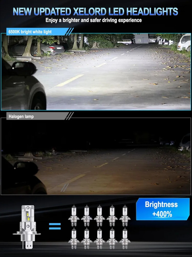 لامپهای XELORD H4 LED علاوه بر بهبود روشنایی، انرژی کمتری نسبت به هالوژن مصرف میکنند و باعث کاهش مصرف برق خودرو میشوند. همچنین، این چراغها به دلیل شدت نور بالا و تمرکز دقیق پرتو، به شما کمک میکنند که نقاط تاریک جاده را راحتتر ببینید و امنیت رانندگی را افزایش دهید. این محصول مناسب انواع خودروها و موتورسیکلتهایی است که از لامپ H4 استفاده میکنند و با کیفیت بالا و قیمت مناسب، انتخابی ایدهآل برای ارتقاء سیستم روشنایی خودرو است.