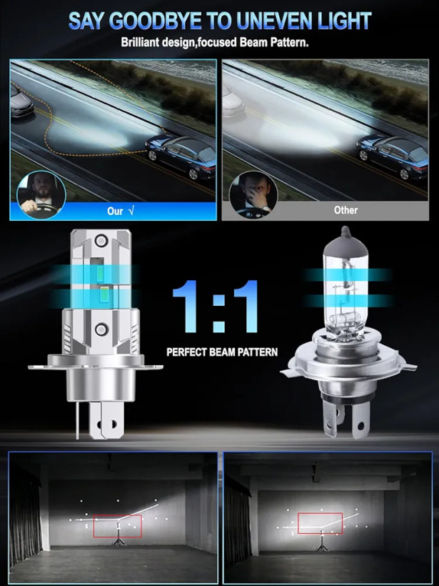 این محصول با طراحی Plug & Play مناسب برای سوکتهای H4 است و نصب آن بدون نیاز به تغییر سیمکشی یا ابزار پیچیده امکانپذیر است. بدنه چراغ از مواد با کیفیت بالا ساخته شده که مقاومت در برابر حرارت و لرزش را تضمین میکند و طول عمر طولانی دارد. سیستم خنککننده داخلی (فن یا هیتسینک) از داغ شدن LED جلوگیری کرده و کارایی نوری ثابت را در طول زمان حفظ میکند.