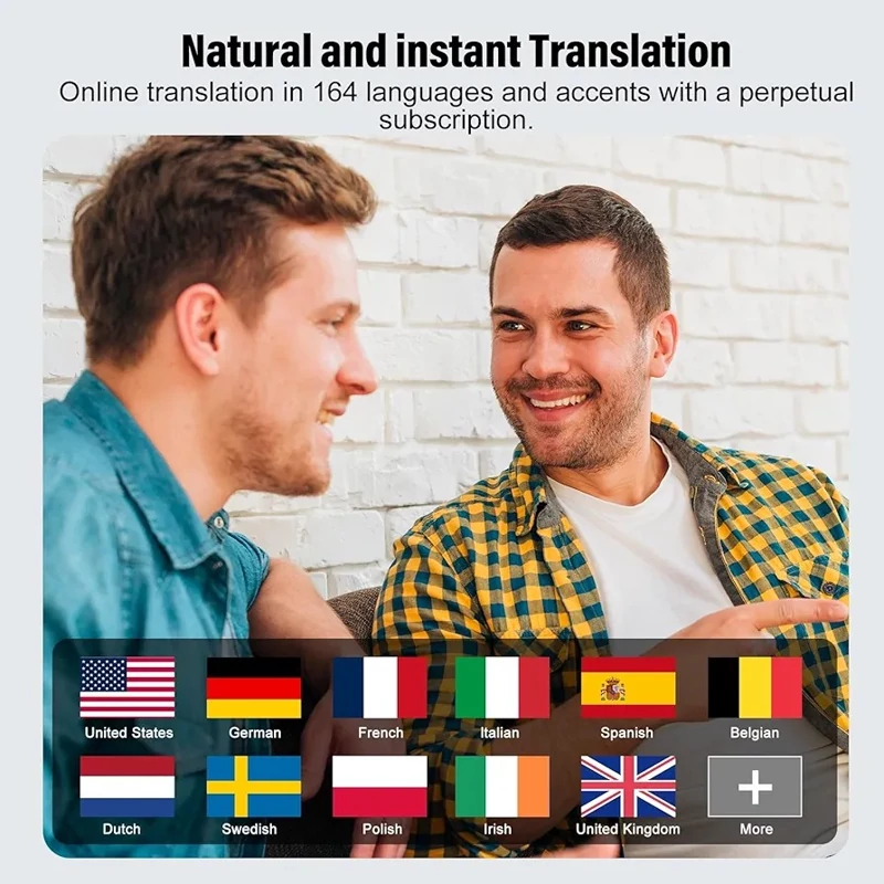 ترجمه همزمان ۱۶۴ زبان: این هدست قادر است مکالمات را در ۱۶۴ زبان مختلف بهصورت آنی و دقیق ترجمه کند.