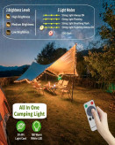 چراغ کمپینگ چندمنظوره با ریسه LED مدل 32.8FT یک راهحل کامل برای ایجاد نورپردازی حرفهای در سفر، کمپینگ، فضای باز، باغ و حتی دکوراسیون داخلی است. این محصول با طراحی هوشمندانه، هم بهعنوان چراغ کمپینگ قابل حمل و هم ریسه LED تزئینی قابل استفاده بوده و تجربهای متفاوت از روشنایی را برای شما فراهم میکند.