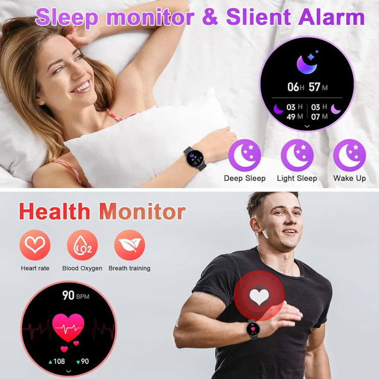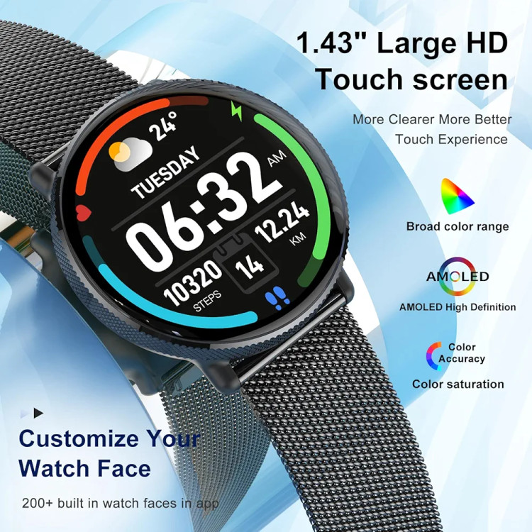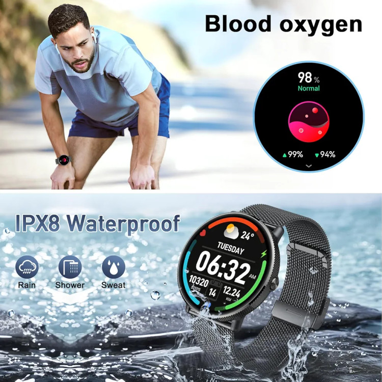 با پایش ضربان قلب و اکسیژن خون (SpO2)، شما میتوانید سلامت خود را در طول روز تحت کنترل داشته باشید. همچنین قابلیت پایش خواب، گام شمار، کالری مصرفی و مسافت طی شده به شما کمک میکند تا روند فعالیت بدنی خود را بهبود دهید. اتصال بلوتوثی این ساعت هوشمند به گوشیهای اندروید و آیفون امکان دریافت اعلانها، تماسها، پیامها و کنترل موسیقی را به صورت مستقیم روی مچ دست فراهم میکند.