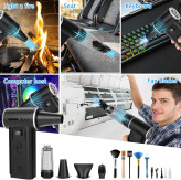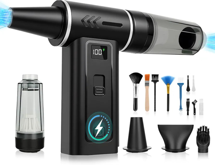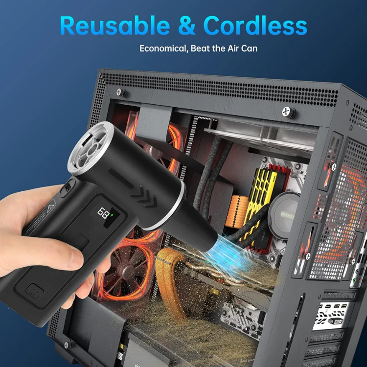 طراحی ارگونومیک و وزن سبک این دستگاه باعث میشود استفاده طولانیمدت بدون خستگی ممکن باشد. موتور توربوفن پیشرفته با سرعتی تا 180,000 RPM قدرت هوادهی فوقالعادهای ایجاد میکند که برای پاکسازی گردوغبار عمیق در کیبورد، کیس کامپیوتر، لپتاپ، کنسول بازی، اسپیکر، دریچه کولر خودرو، لنز دوربین، تجهیزات اداری و صنعتی کاربرد دارد. از سوی دیگر، قابلیت مکش قوی و نازلهای متنوع اجازه میدهد هرگونه ذرات ریز و گرد و غبار را بهسادگی جمعآوری کنید.