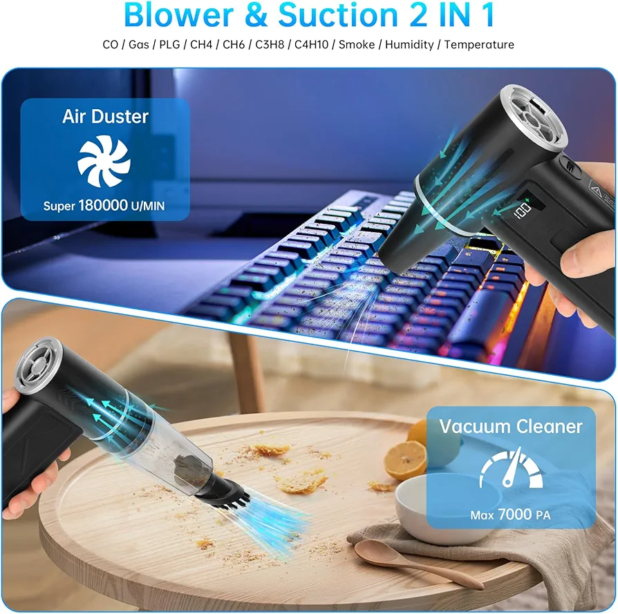 طراحی ارگونومیک و وزن سبک این دستگاه باعث میشود استفاده طولانیمدت بدون خستگی ممکن باشد. موتور توربوفن پیشرفته با سرعتی تا 180,000 RPM قدرت هوادهی فوقالعادهای ایجاد میکند که برای پاکسازی گردوغبار عمیق در کیبورد، کیس کامپیوتر، لپتاپ، کنسول بازی، اسپیکر، دریچه کولر خودرو، لنز دوربین، تجهیزات اداری و صنعتی کاربرد دارد. از سوی دیگر، قابلیت مکش قوی و نازلهای متنوع اجازه میدهد هرگونه ذرات ریز و گرد و غبار را بهسادگی جمعآوری کنید.