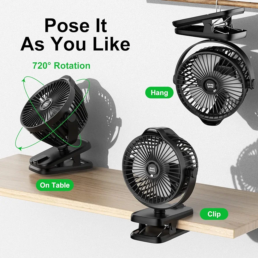 پنکه شارژی گیرهای Minthouz 8000mAh یک انتخاب حرفهای برای خنکسازی سریع و قابلحمل در خانه، محل کار و فضای باز است. این پنکه قابل حمل با طراحی گیرهای قدرتمند، بهراحتی روی لبه میز، تخت، کالسکه کودک، چادر مسافرتی یا حتی تجهیزات ورزشی نصب میشود و با باتری پرظرفیت 8000 میلیآمپرساعتی، ساعتها باد خنک و یکنواخت تولید میکند. اگر به دنبال پنکه شارژی مخصوص کالسکه یا یک پنکه رومیزی بیصدا هستید که در سفر و طبیعتگردی هم همراهتان باشد، Minthouz گزینهای ایدهآل است.