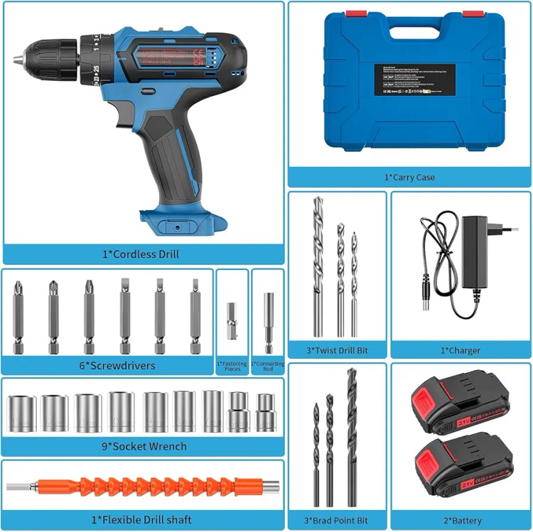 یکی از مزایای مهم این دریل شارژی خانگی، همراه داشتن مجموعهای از سریها و متههای کاربردی است که آن را به یک پکیج کامل تبدیل میکند. چراغ LED تعبیهشده در جلوی دستگاه نیز کار در محیطهای کمنور را آسانتر میکند. طراحی دسته ضدلغزش و وزن متعادل دستگاه باعث میشود حتی در استفاده طولانیمدت نیز احساس خستگی کمتری داشته باشید.