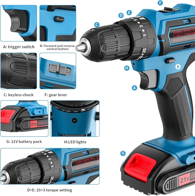این دستگاه معمولاً با باتری لیتیوم یونی 21V عرضه میشود که شارژدهی مناسبی برای استفادههای روزمره دارد. وجود چندین حالت تنظیم گشتاور (25+3 حالت) به شما کمک میکند نیروی مناسب را برای پیچکاری یا سوراخکاری در چوب، پلاستیک و فلزات سبک انتخاب کنید. همچنین دو سرعت متفاوت برای کنترل بهتر عملکرد دستگاه در نظر گرفته شده است.