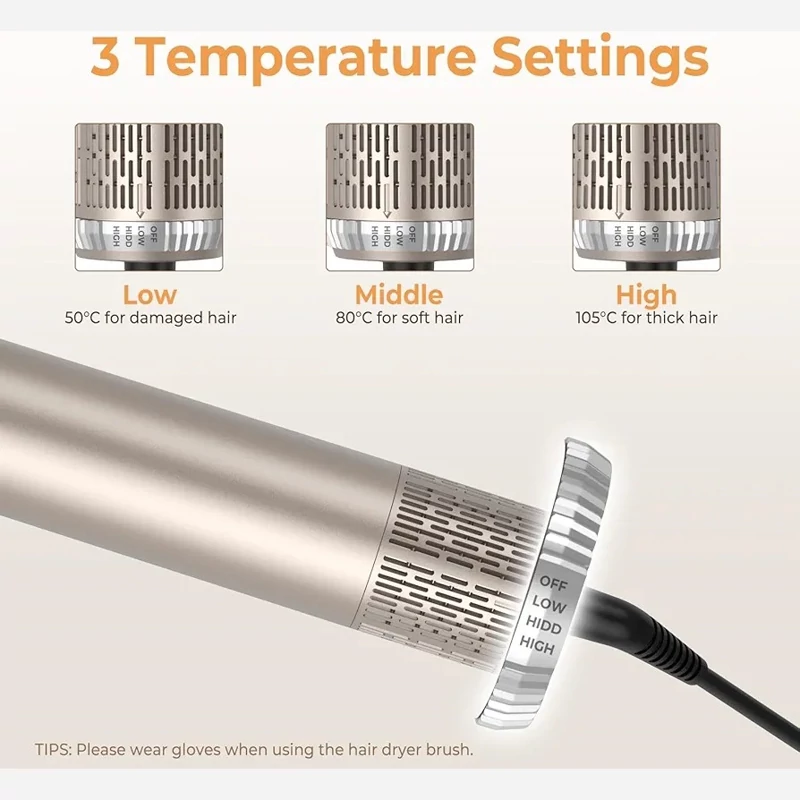 برای انواع موها از نازک تا ضخیم مناسب است و با تنظیم دما و سرعت قابل استفاده است.