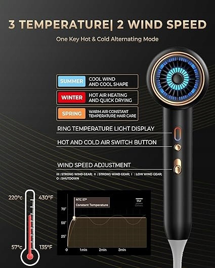 به دلیل قدرت بالا، برای موهای ضخیم، پرپشت و بلند بسیار مناسب است و با تنظیمات دما برای موهای نازک هم قابل استفاده است.