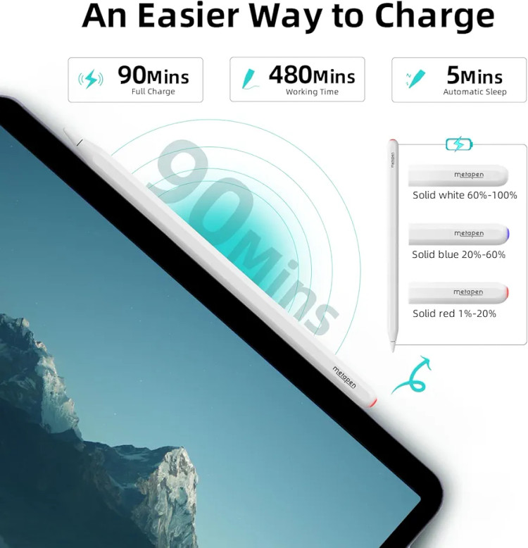قلم لمسی Metapen A14 یک استایلوس حرفهای و خوشساخت برای کاربرانی است که بهدنبال جایگزینی باکیفیت و اقتصادی برای Apple Pencil 2 هستند. این قلم بهطور اختصاصی برای آیپدهایی طراحی شده که از شارژ مغناطیسی پشتیبانی میکنند و با اتصال مغناطیسی به لبه دستگاه، بدون نیاز به کابل بهصورت بیسیم شارژ میشود. اگر دانشآموز، دانشجو، طراح یا تولیدکننده محتوا هستید، Metapen A14 میتواند تجربهای دقیق، روان و بدون تأخیر را هنگام یادداشتبرداری، طراحی و ویرایش برای شما فراهم کند.