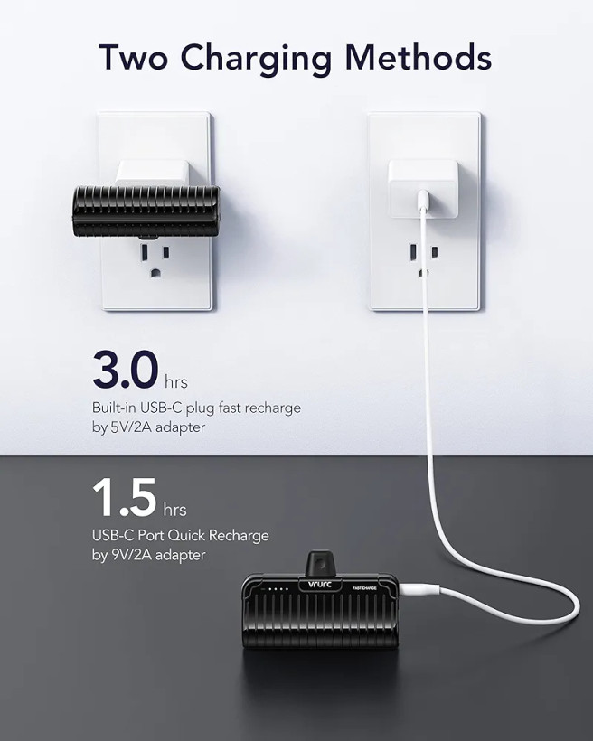اگر بهدنبال یک پاوربانک کوچک و قدرتمند برای استفاده روزمره و سفر هستید، VRURC Mini Portable Charger با کابل داخلی یکی از بهترین گزینهها در دستهی پاوربانک 10000 میلیآمپر فست شارژ محسوب میشود. این شارژر همراه با طراحی جمعوجور و وزن سبک، بهراحتی داخل جیب یا کیف قرار میگیرد و همیشه آماده تأمین انرژی گوشی موبایل، تبلت یا سایر دستگاههای دیجیتال شماست.