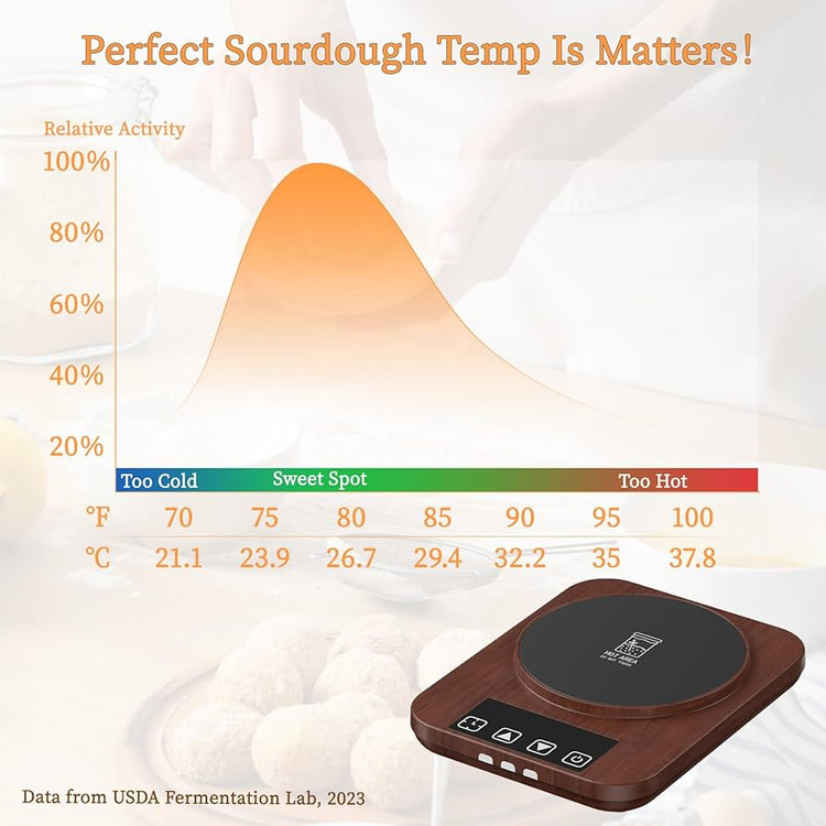 یکی از چالشهای اصلی در تهیه خمیر ترش، نوسانات دمای محیط است. در فصلهای سرد یا در فضاهای دارای تهویه قوی، استارتر بهخوبی فعال نمیشود و نتیجه کار ضعیف خواهد بود. این دستگاه گرمکن استارتر با دقت تنظیم دما در بازه 1± درجه، فرآیند تخمیر را پایدار و قابل پیشبینی میکند. تایمر 12 ساعته با قابلیت خاموشی خودکار نیز به شما اجازه میدهد بدون نگرانی از افزایش بیش از حد دما، فرآیند تخمیر را مدیریت کنید.
