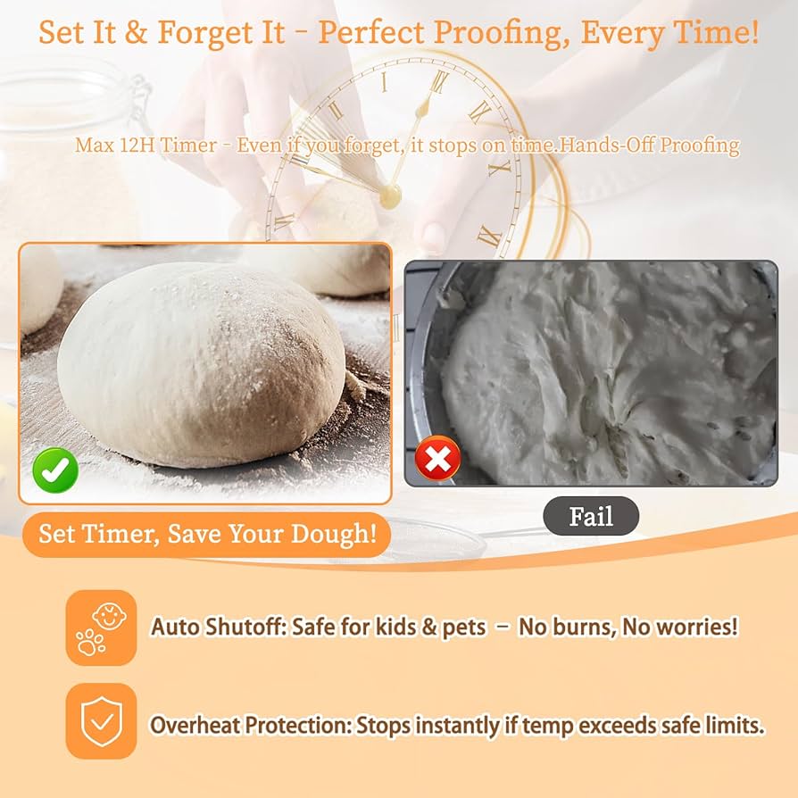 یکی از چالشهای اصلی در تهیه خمیر ترش، نوسانات دمای محیط است. در فصلهای سرد یا در فضاهای دارای تهویه قوی، استارتر بهخوبی فعال نمیشود و نتیجه کار ضعیف خواهد بود. این دستگاه گرمکن استارتر با دقت تنظیم دما در بازه 1± درجه، فرآیند تخمیر را پایدار و قابل پیشبینی میکند. تایمر 12 ساعته با قابلیت خاموشی خودکار نیز به شما اجازه میدهد بدون نگرانی از افزایش بیش از حد دما، فرآیند تخمیر را مدیریت کنید.